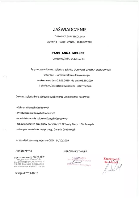 Poniżej znajdą Państwo certyfikaty uzyskane przez nasze biuro.